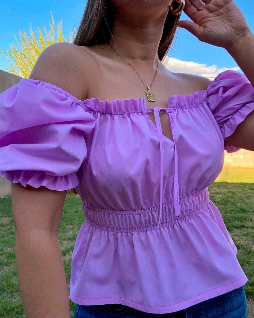 “En ese tiempo estaban muy de moda las blusas campesinas, con hombros descubiertos y holán, así que decidí hacerlas. Nunca había cosido, de hecho me sorprende, jamás había usado una máquina de coser, porque como mi abuelita cosía, yo era muy atenida”.