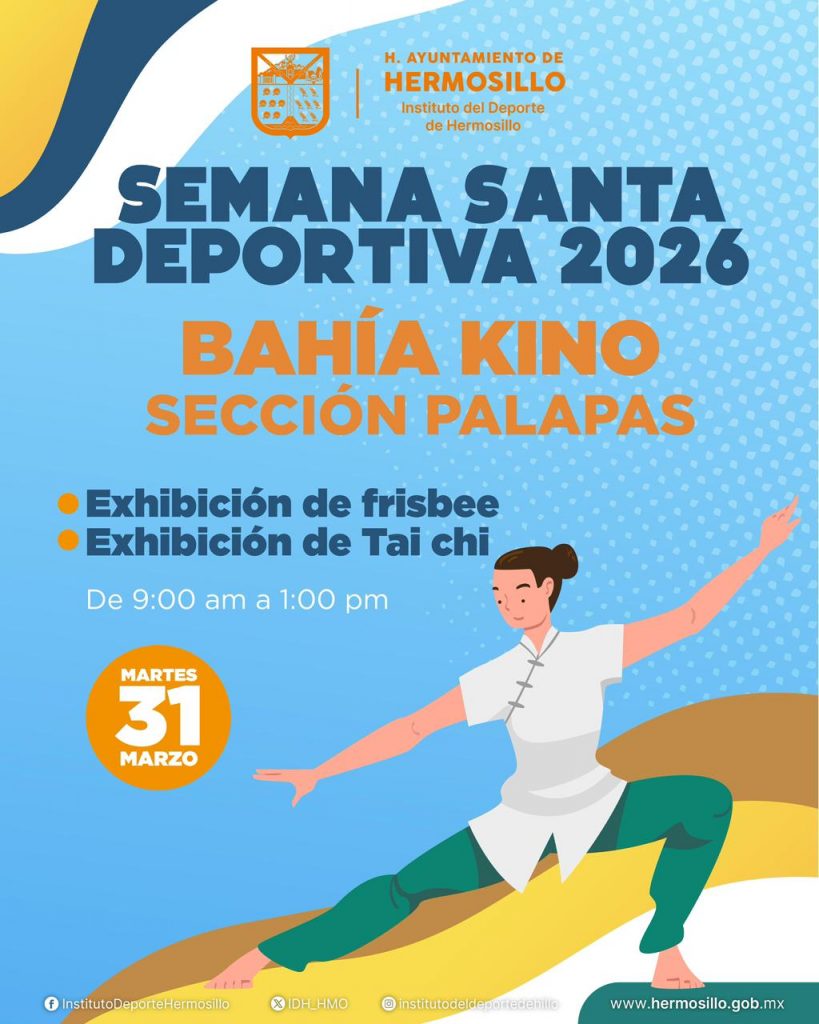 Por su parte, Bahía de Kino ofrecerá el martes 31 de marzo una jornada con exhibiciones de frisbee y sesiones de taichí, aprovechando el entorno natural del destino turístico para promover la activación física y el esparcimiento.