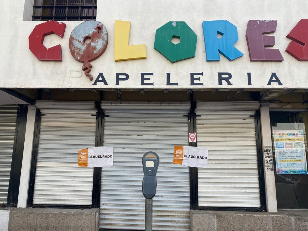 Justamente en el mismo día, una tienda de ropa, una joyería y una papelería fueron clausurados en la avenida Matamoros, entre Elías Calles y Carmén Serdán.