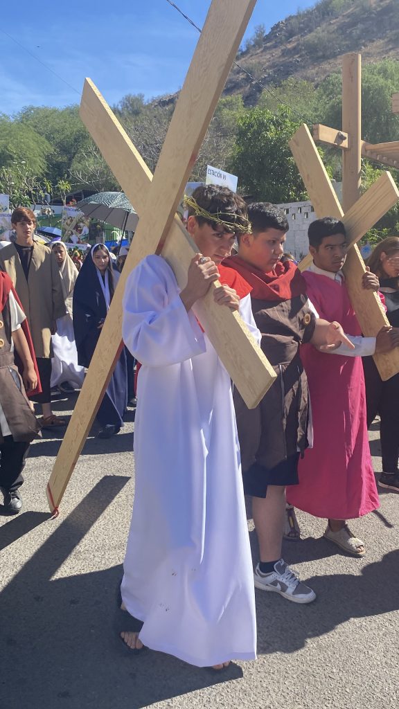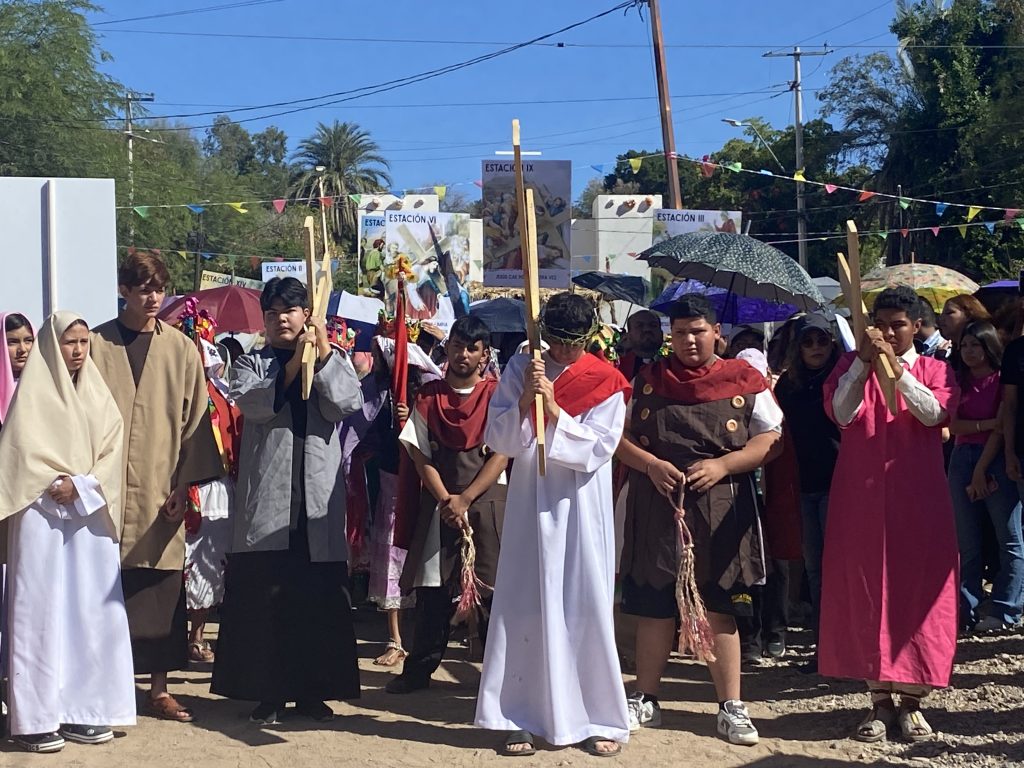 Hermosillo, Sonora.- Con fe y devoción, decenas de feligreses de la parroquia Inmaculado Corazón de María se congregaron este Viernes Santo para llevar a cabo la representación del viacrucis de Jesucristo, recreando el camino hacia la crucifixión.