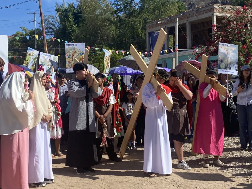 Se trata de una de las tradiciones más significativas de la Semana Santa, y en este caso en específico inició en la colonia Coloso y concluyó en la iglesia ubicada en la colonia El Mariachi.