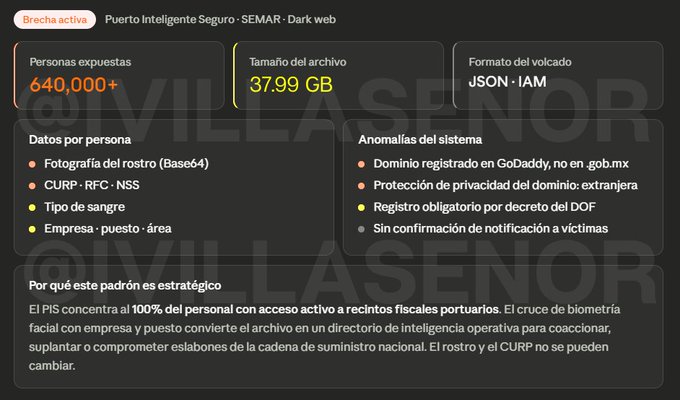 Un presunto ataque cibernético habría comprometido información sensible de más de 640 mil operadores portuarios registrados en la plataforma Puerto Inteligente Seguro (PIS), sistema utilizado por la Secretaría de Marina para el control de accesos en puertos del país.