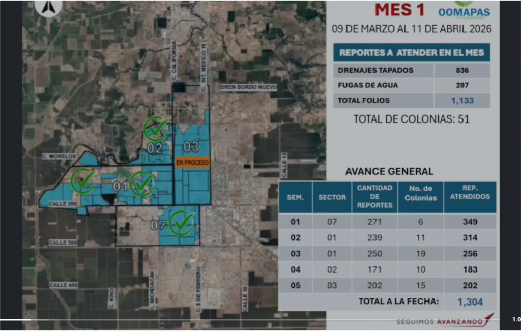 Ciudad Obregón.- El Gobierno Municipal de Cajeme reportó avances significativos en la atención de problemáticas relacionadas con agua potable y alcantarillado sanitario, al resolver más del 50 por ciento de los reportes ciudadanos a través del programa “Unidos Cajeme Avanza”.