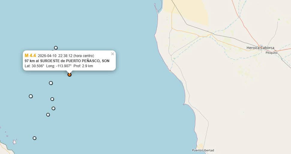 Se registran dos sismos de magnitud de hasta 4.4 en Puerto Peñasco, Sonora