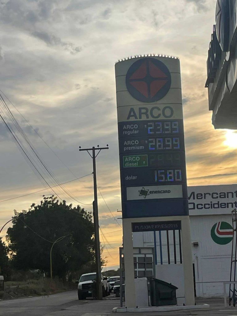 Para el sur, en la gasolinera Pemex de El Gallo tienen la magna en 23.99, la premium en 29.72, y el diésel a 29.18 pesos. Mientras que en la marca Power Gas del bulevar Manuel Clouthier y Libertad ofrecen los combustibles a 23.30, 28.19 y 28.28.