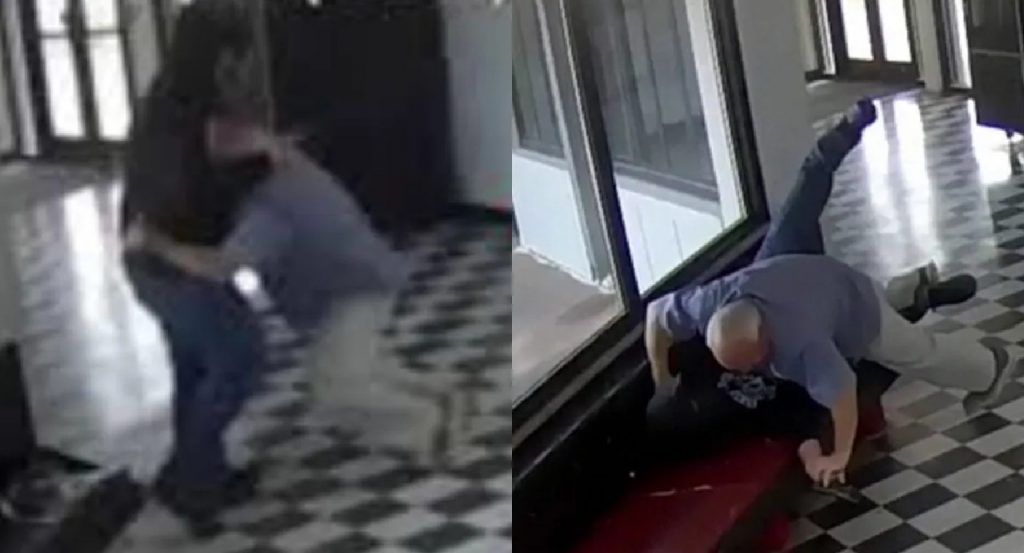 Las cámaras de seguridad muestran el momento en que Moore enfrenta al agresor dentro del edificio escolar, una acción que, según la policía citada por NBC News y FOX 9, fue decisiva para evitar una tragedia.