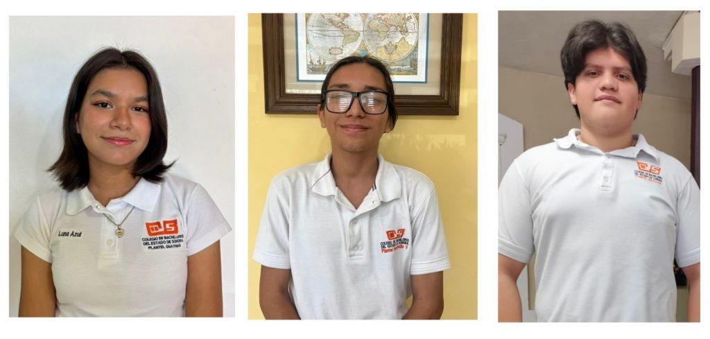 Se trata de Joaquín Emilio Rivas Menchaca, Santiago López Mendoza y Luna Azul Villegas Galaz, quienes cursan sus estudios en los planteles Navojoa, Hermosillo V y José María Maytorena Tapia de Guaymas.
