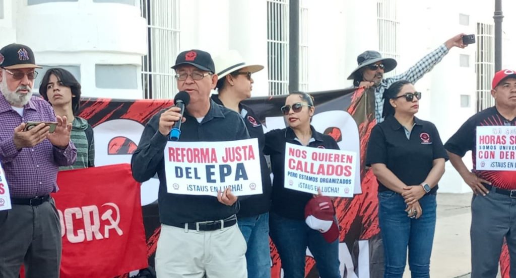 El secretario general del STAUS, Cuauhtémoc Nieblas Cota, informó que la marcha realizada a las 09:00 horas del viernes tuvo como objetivo respaldar a los trabajadores en paro y reiterar que el movimiento sindical continúa activo.