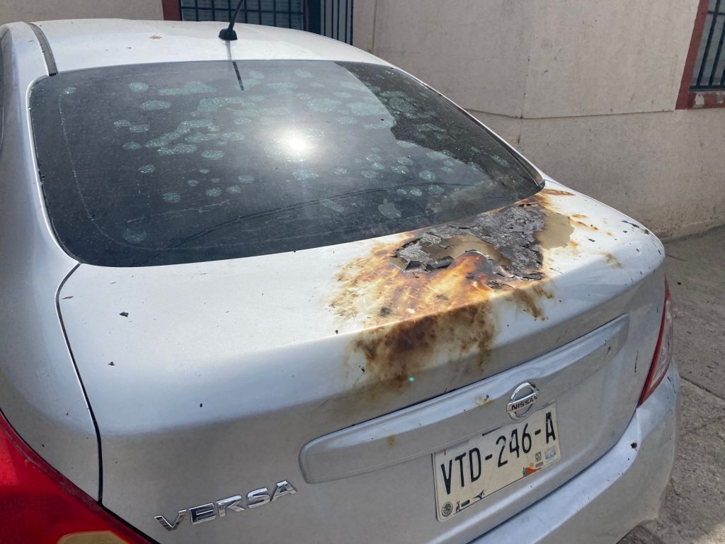 Otro carro que estaba estacionado en la vivienda enseguida también sufrió daños en la parte de la cajuela, tratándose de un Nissan Versa plateado.