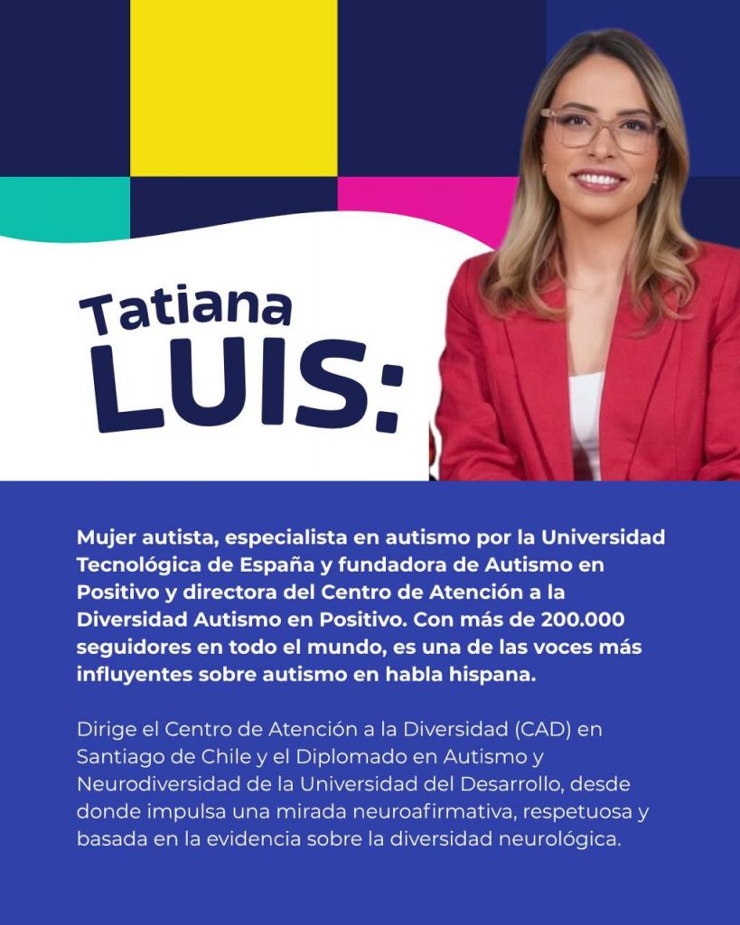 Entre las ponentes destacan Tatiana Luis, quien además forma parte del espectro autista, y Karem Harboe, experta en integración sensorial. Ambas compartirán herramientas prácticas sobre procesamiento sensorial, desregulación, ajustes razonables en el aula y comprensión del cerebro neurodivergente.