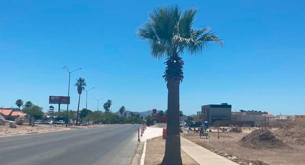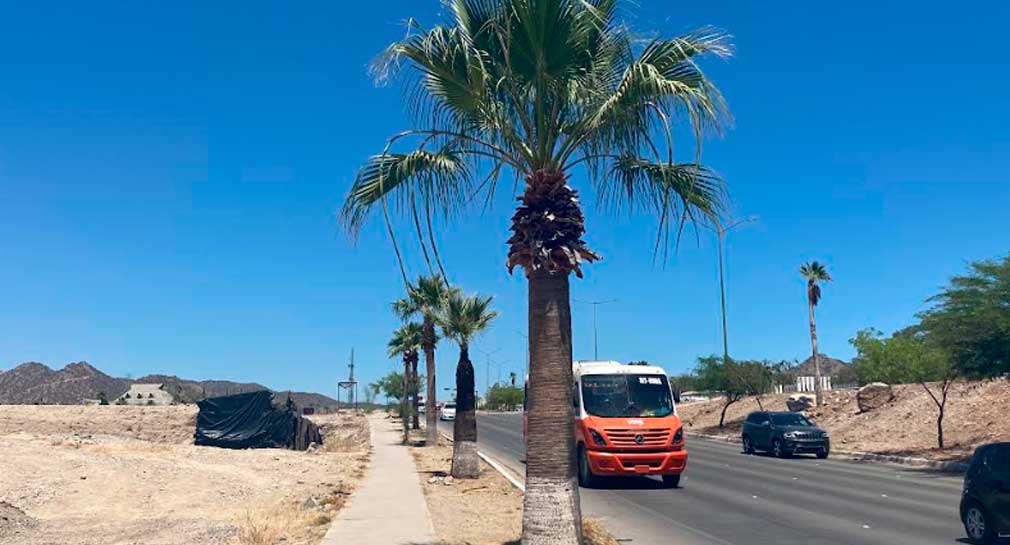 Hermosillo, Sonora.- Varias palmeras fueron retiradas de una banqueta del bulevar Morelos final para la creación de un carril de acceso para una nueva plaza comercial que está en construcción, reportó el activista ambiental Sergio Müller.