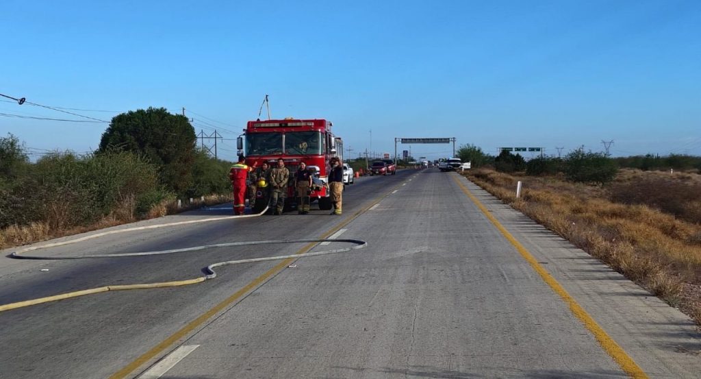 En la zona se encuentran elementos del Cuerpo de Bomberos y de Protección Civil de Navojoa, quienes realizan maniobras para la extracción de la unidad y atención de la situación.