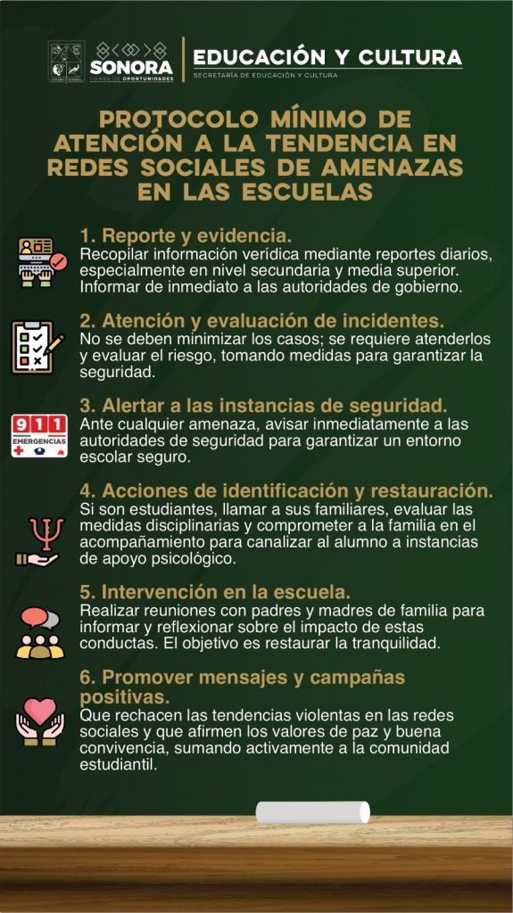 El Gobierno de Sonora, a través de la Secretaría de Educación y Cultura (SEC), lanzó un llamado urgente a la ciudadanía, especialmente a la comunidad estudiantil, para rechazar contenidos en redes sociales que inciten a la violencia o generen temor en los planteles escolares.