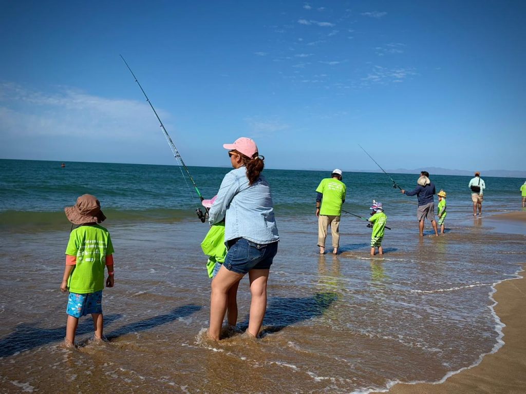 El evento, realizado en el marco del Día del Niño y la Niña en México, reunió a 70 parejas integradas por niñas, niños y personas adultas acompañantes, quienes desde temprana hora se dieron cita a la orilla del mar para vivir la experiencia de la pesca deportiva.