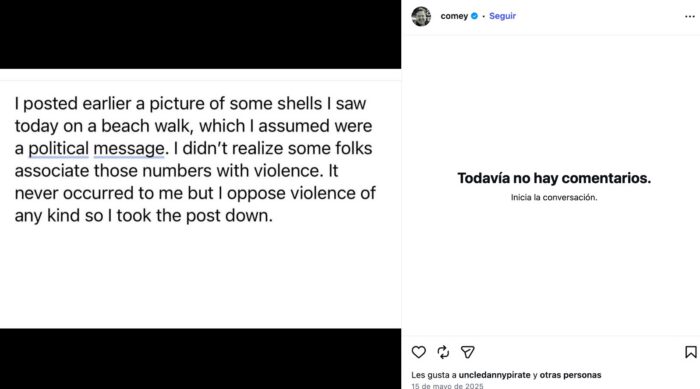 Tras la polémica, Comey aclaró en un mensaje posterior que su intención era emitir un “mensaje político”, negando cualquier vínculo con incitación a la violencia.