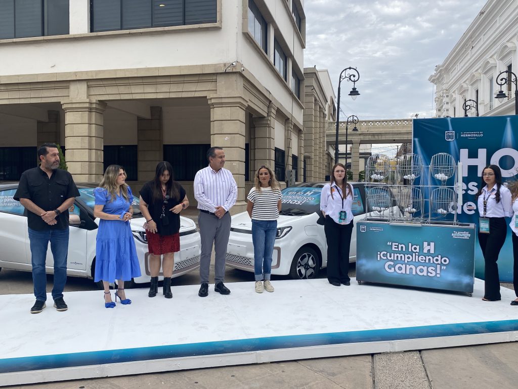 Hermosillo, Sonora.- El sorteo “¡En la H, Cumpliendo Ganas!” se llevó a cabo esta tarde, donde dos hermosillenses que pagaron su predial a tiempo se llevarán a casa un vehículo eléctrico cada uno.