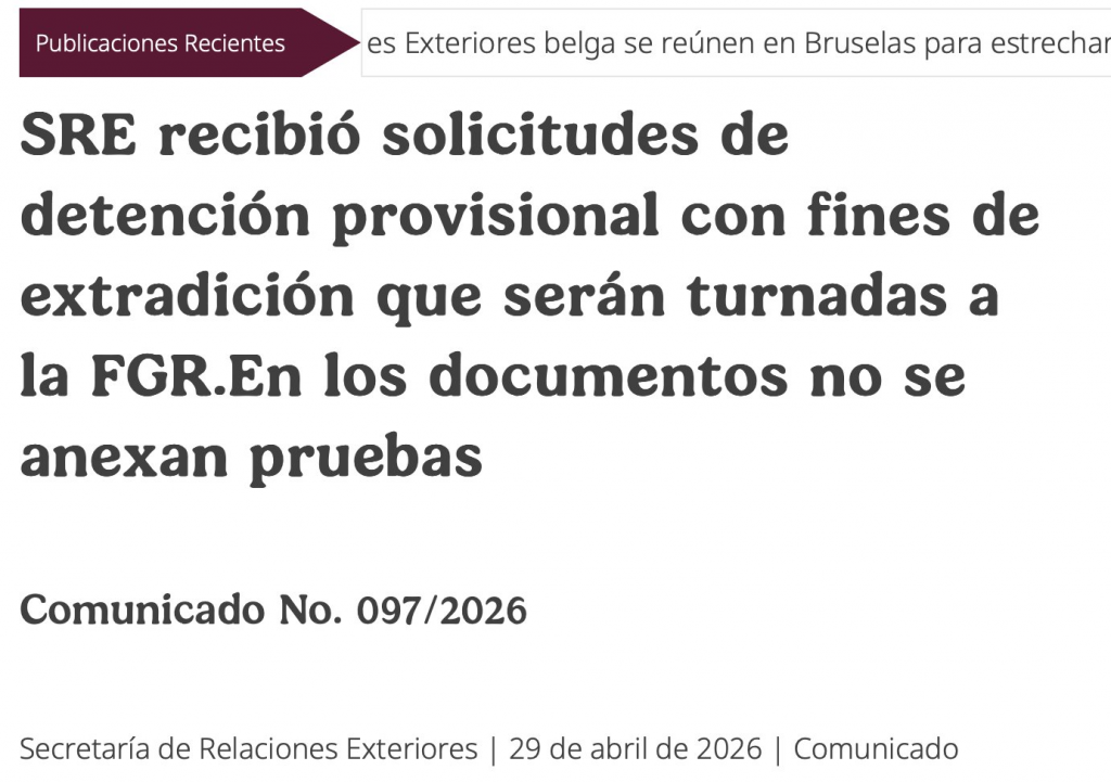 La dependencia informó que los expedientes ya fueron turnados a la Fiscalía General de la República (FGR), instancia encargada de revisar la información y definir si existen bases legales para continuar con el proceso conforme a la legislación mexicana.