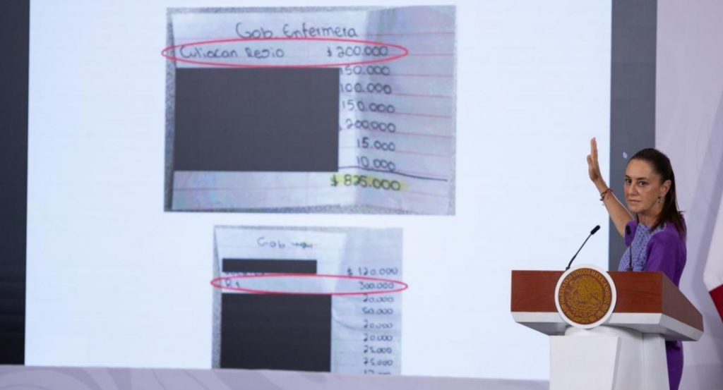 La presidenta Claudia Sheinbaum Pardo cuestionó las presuntas pruebas presentadas por el Departamento de Justicia de Estados Unidos (DOJ) para acusar a 10 mexicanos, entre ellos el gobernador de Sinaloa, Rubén Rocha Moya, al señalar que se trata de fotografías de hojas con cifras de supuestos sobornos.